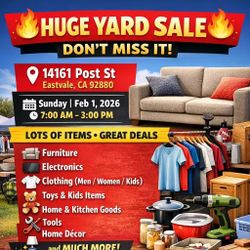 Huge Yard Sale – Furniture, Electronics, Tools & More (Eastvale)$1Corona, CA