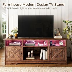 TV Stand for 65 Inch TV, Farmhouse Entertainment Center with Power Outlet & LED Light and Storage Cabinets, Console Table and Media Furnitu$100Ontario, CA