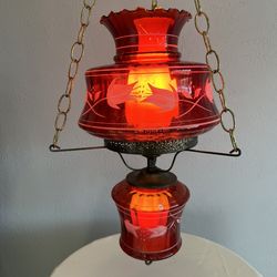 Vintage 3-Way Red Glass Hurricane Hanging Lamp with Hand-Painted Flowers$200Huntington Beach, CA