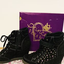 Like New. Size 7 Black Suede VERA WANG PRINCESS wedges Sneaker. Can Be For Everyday Any Event. Great Height And Lift Buttocks. Originally $85$45Torrance, CA