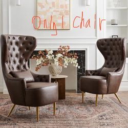 KINWELL 30" W Faux Leather Tufted High Wingback Chair (1) Mid Century Modern Accent Armchairs with Gold Metal Legs & Toss Pillow for Living Roo$350Corona, CA