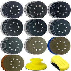7-4)50 Pieces Sandpaper 8 Holes 5 Inch Sand Disc Hook Ring 60/180/240/400/800/1200/2500/4000/7000/10000 Grit with Hand Sander for Car Metal Polishing$7Diamond Bar, CA