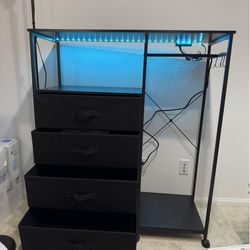 Bedroom Dresser with Hanging Rack, 4 Drawers Dresser with Charging Station and LED Lights, Storage Chest of Drawers with Clothes Rack and Wheels, Wood$100Montclair, CA