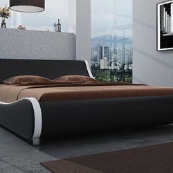 A103 $140 Modern Low Profile Platform Bed Frame Queen Size, Stylish Faux Leather Upholstered Sleigh Bed with Adjustable Headboard, No $140Ontario, CA