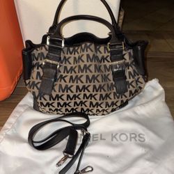 Brand New Michael KORS GANSEVOORT BEIGE/BLACK with silver buckles on handles and crossbody strap And Brand New Matching Wallet $250Corona, CA