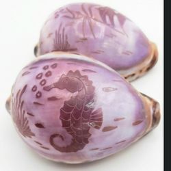 Tiger cowrie shells w hand carved sea horse & fish NAUTICAL beach home decor / wedding, etc.$25Corona, CA