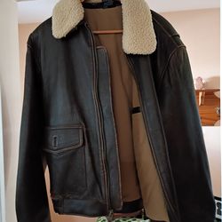 Vintage aviator Brown fleece leather bomber jacket men's large$100La Habra Heights, CA