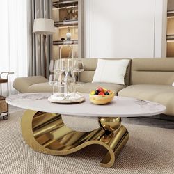 White Coffee Table with Marble Top for Living Room,Oval Coffee Table with Gold Based,Modern Center Table for Office,Home$200Rancho Cucamonga, CA