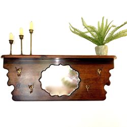 Vintage Cottage Core Farmhouse Wall Shelf With Hooks And Mirror-Hall Tree$65La Verne, CA