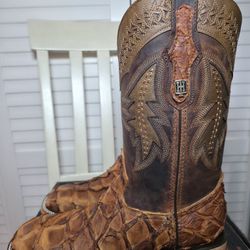 HomeTown Fish Pecan Square Toe Western Boots Men's Size 8.5 D$390Riverside, CA