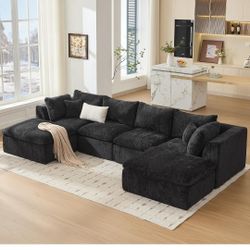 113" Corduroy Modular Sectional Sofa with Extra-Wide Seat Cushion and OttomanοΌGray$350Corona, CA