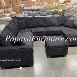 NEW Large U Shape BLACK Chenille Fabric Sectional Sofa and Chaise with Ottoman Set Ashley Style BIG Couch SALE Sleeper Can combine into Bed Clearance$799San Bernardino, CA