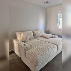 White fabric double chaise sofa with cup holders$1,139Menifee, CA
