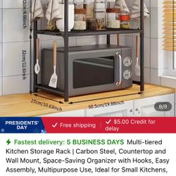 4-Tire Storage Shelves Organizer, Foldable Metal Garage Shelving, Portable Closet Shelving Unit, 28" x 13" x 48" Kitchen Bakers Rack Microwave Stand o$45Riverside, CA