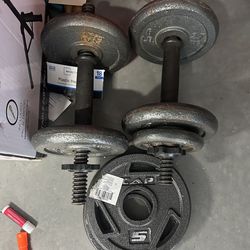 Weights 85 lbs plus solid 5 ft bar and solid 14 inch dumbbell bars$100Covina, CA