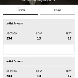 2 YE TICKETS 4/1 SECTION 234 row 13 $325Los Angeles, CA