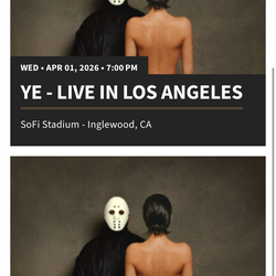 YE / Kanye Tickets$400Los Angeles, CA