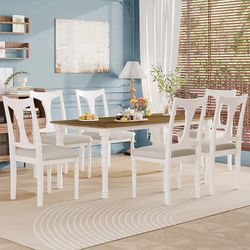 7-Piece Dining Set, Extendable Table 60-70" with 6 Upholstered Chairs, Natural+White$320Ontario, CA