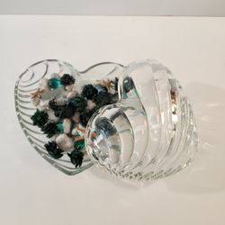 Vtg. Heart Shape Swirl Pattern Clear Glass Candy Jewelry Trinket Dish & Sea Bits$12Lake Forest, CA