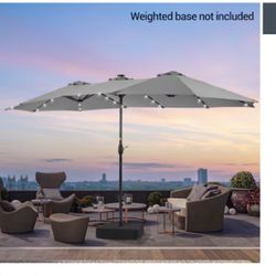 (NEW) $130 Large 15 FT Double Sided Outdoor Umbrella with 65 LBS Plastic Weight Base (Beige color) $130San Gabriel, CA