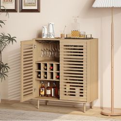 Bar Cabinet with Wine Racks, Modern Liquor Cabinet with Slatted Doors for Dining Room, Living Room (Natural Color)$70Ontario, CA