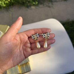 vintage gold-tone clip-on earrings feature elegant rhinestone bows and faux pearl$13San Dimas, CA