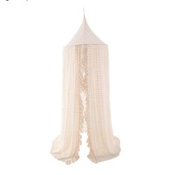 Wonder Space Elegant Kids Bed Canopy - Lace Gauze Mesh with Pompoms, Fairy Dream Tent for Girls Princesses, Hanging Curtain for Baby Room Crib Anti-Mo$24Ontario, CA