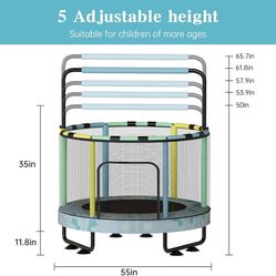 55" 7-in-1 Round Trampoline for Kids Boys & Girls Ages 1-8, Indoor & Outdoor Trampoline for Fun, Adjustable Height Handrail & Enclosed Safety Net & Du$90Ontario, CA