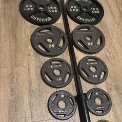 7 ft Steel Standard Bar With Weight Plates [ 25s, 10s, 7.5s and 5s {Brute Weight= 120 lbs)$180Los Angeles, CA