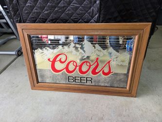 Vintage 80s Coors Beer Mirror Sign Wood Frame Mountain Bar Decor Large Rustic$80Corona, CA