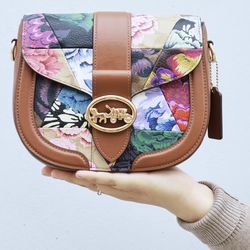 Beautiful Coach patchwork saddle bag 🌸✨ This bag features a unique colorful floral patchwork design with classic brown leather trim and signature Coa$380Laguna Hills, CA