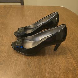 Size 9 black peep toe heels$8Riverside, CA