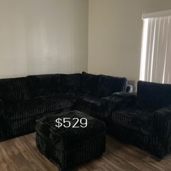 Stylish Black Sectional Sofa With Ottoman Black Corduroy Fabric Material $529Los Angeles, CA