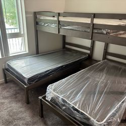 Twin bunk bed. Available in espresso, white, & grey. Bunk bed only-$220. With mattresses-$399. Assembly required. Assembly not included. Tax included.$220Anaheim, CA