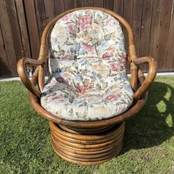 Swivel Rattan Lounge Chair With Floral Cushion $120Westminster, CA