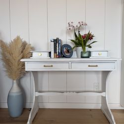 Vintage White Desk with Hutch Storage – Solid Wood, Brass Hardware$180Huntington Beach, CA