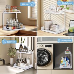 Set of 2 WHITE COLOR Metal Under Sink Organizer Shelves Storage with Pull Out Basket New Condition$18Garden Grove, CA