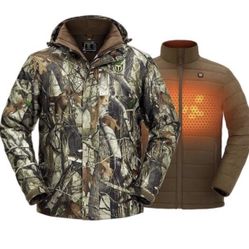 Tidewe Men's Heated Jacket | 3-in-1 Waterproof Heated Coat with Hooded Shell & Inner Jacket | Heated Clothing for Hunting with 10000mAh Battery Pack B$45Yorba Linda, CA