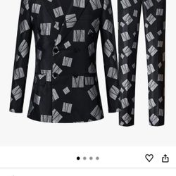 Men's Black White Geometric 2 Piece Suit Double-Breasted Jacket Pants Set Size M$75Los Angeles, CA