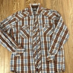 Panhandle Western Style Brown Plaid Long Sleeve Pearlsnap Shirt Men’s Size L$40Alhambra, CA