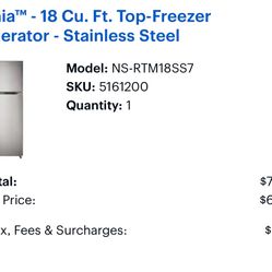 Insignia 18 Cu. Ft. Top Freezer Refrigerator- Stainless Steel$300Gardena, CA