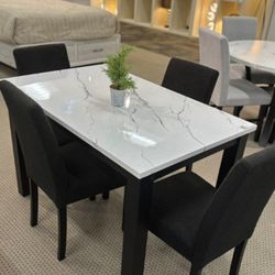 Cute! 5-pc dining table set white faux marble table top black upholstered Chairs$299Altadena, CA