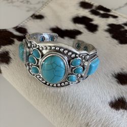 STAGECOACH FESTIVAL JEWELRY Faux Turquoise Silver Tone CUFF BRACELET Western Cowgirl Concerts Rodeo$12Yorba Linda, CA