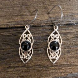 Vintage 925 Sterling Silver Black Onyx Celtic Knot Dangle Earrings$65Chino, CA
