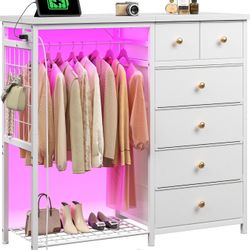 EnHomee Dresser with Hanging Rack, 6 Drawers Dresser with LED Lights & Charging Station, Fabric Dressers & Chest of Drawers, Closet Storage Organizer $70El Monte, CA