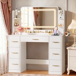 New Makeup Vanity Desk with LED Mirror, Modern Vanity Table Set with Storage & Power Outlet for Bedroom & Dressing Room, White New in box VN25-0938-2$170La Mirada, CA