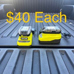 RYOBI ONE+ 18V 2.0 Ah Lithium HIGH PERFORMANCE Battery & Charger Starter Kit **$40 Each**$40Bell Gardens, CA