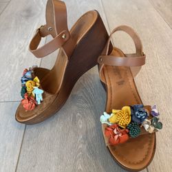 Fabio Maggenti Women's Floral Embellished Leather Wedge Sandals Brown Sz 8 Italy$15Norco, CA
