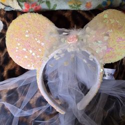 Disney Minnie Mouse Wedding Ears Plus A Extra Throw On Veil For Bachelorette And An Extra Veil With A Comb Crown In A Pearl Accent$45Chula Vista, CA