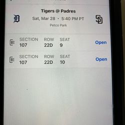 2 PADRES/ TIGERS TICKETS, SATURDAY, 3/28/26, SEC 107, ROW 22D$280San Diego, CA